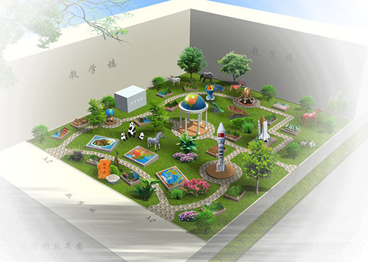 • 設計制作校園雕塑文化、地理園、生物園、生態園;